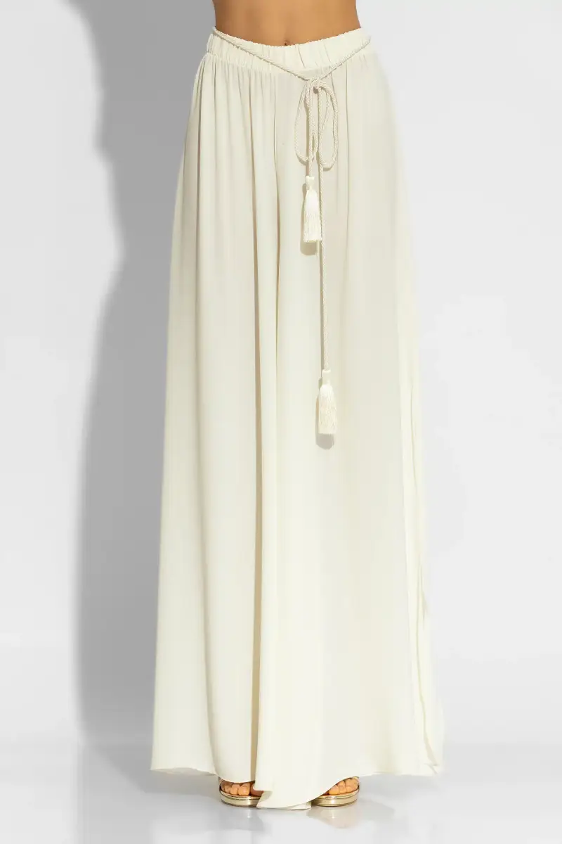 Αυτό το εντυπωσιακό παντελόνι από πολυτελές crepe georgette ύφασμα συνδυάζει άνεση και κομψότητα και δημιουργεί ένα φίνο, σύγχρονο αποτέλεσμα. Αγκαλιάζει απαλά το σώμα, ενώ παράλληλα προσφέρει ελευθερία κινήσεων και ανάλαφρη αίσθηση. Η ψηλόμεση γραμμή τονίζει τη σιλουέτα και χαρίζει ισορροπία σε κάθε εμφάνιση, ενώ ταυτόχρονα διατηρεί κομψό χαρακτήρα.