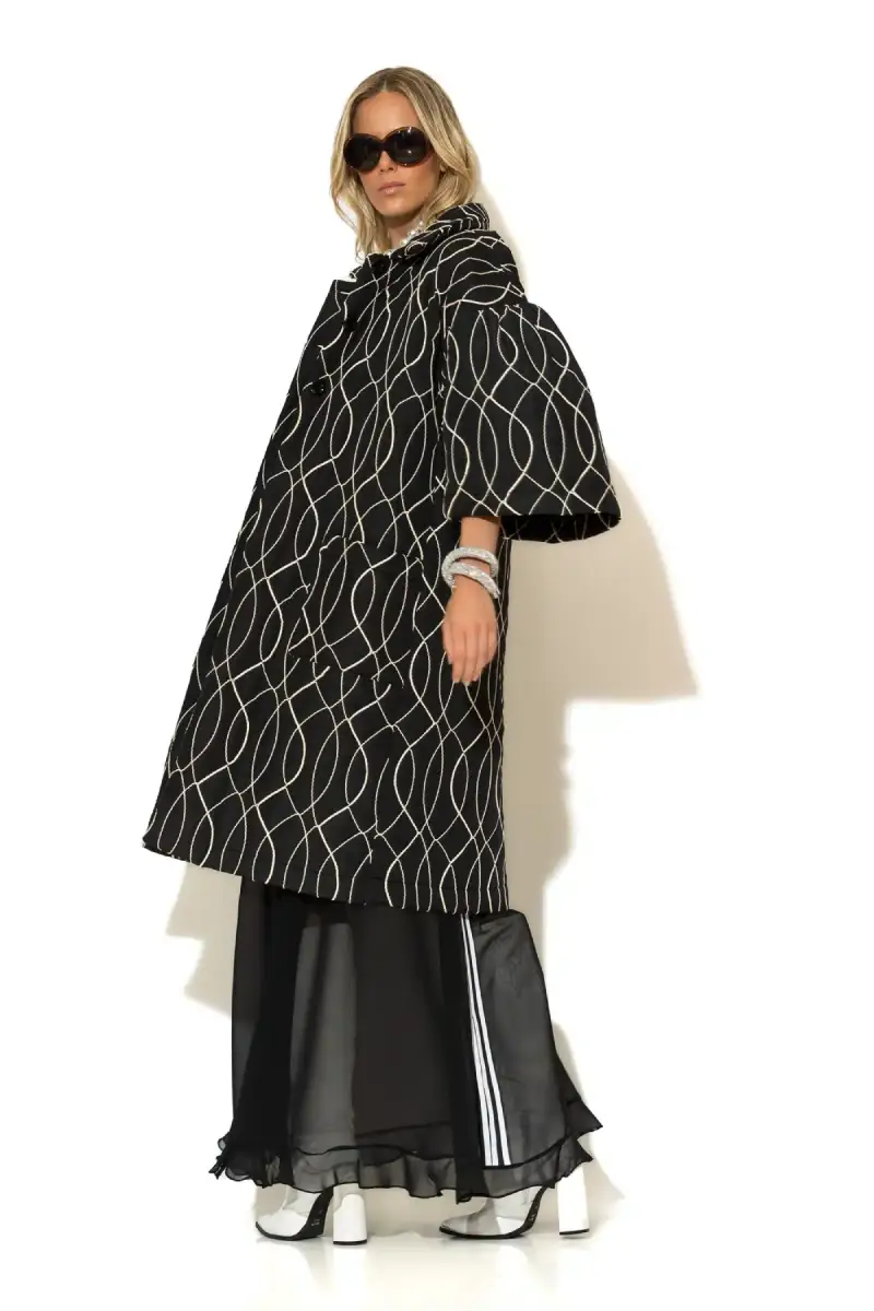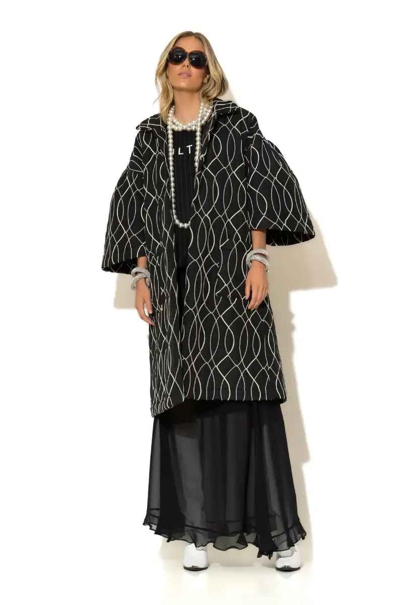 Το κεντητό καπιτονέ ύφασμα του δίνει πολυτελή υφή και ξεχωριστή αισθητική, ενώ η άνετη oversized γραμμή εξασφαλίζει ελευθερία κινήσεων και ανεπιτήδευτη κομψότητα. Τα μανίκια 3/4 με όγκο προσδίδουν μια μοντέρνα πινελιά, κάνοντας το παλτό να ξεχωρίζει για τη σιλουέτα και το χαρακτήρα του.