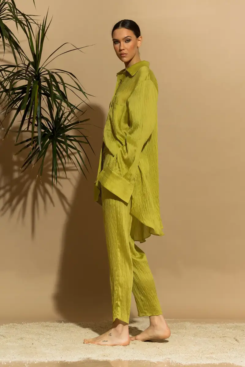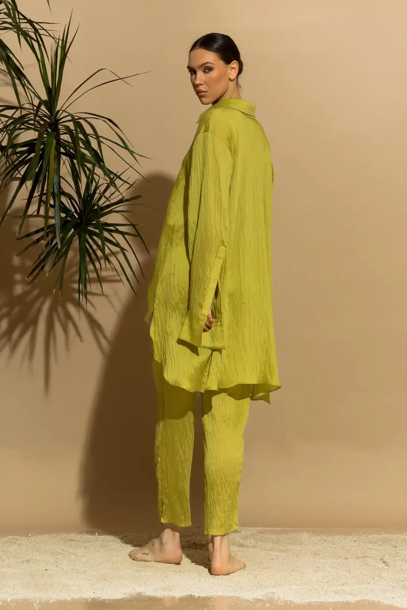 Η καθαρή γραμμή και ο minimal σχεδιασμός σου δίνουν τη δυνατότητα να το συνδυάσεις εύκολα, είτε με παντελόνια για πιο χαλαρό resort look είτε με πιο structured κομμάτια για βραδινές εξόδους. Το ύφασμα με σύνθεση Tencel 66%, nylon 19% και λινό 15% εξασφαλίζει ανθεκτικότητα και κομψότητα, ενώ παράλληλα διατηρεί την ανάλαφρη αίσθηση που χρειάζεσαι από το πρωί μέχρι το βράδυ.