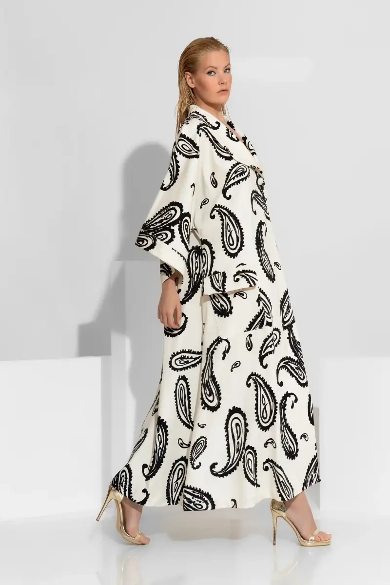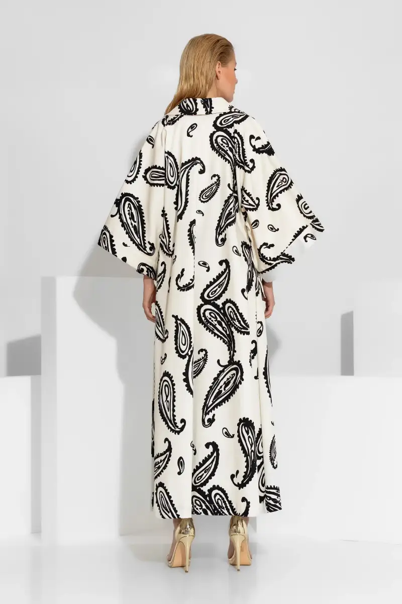 Το μακρύ κιμονό παλτό από βαμβακερή καπαρντίνα χαρίζει χαρακτήρα και σύγχρονη αισθητική σε κάθε εμφάνιση. Το ύφασμα διαθέτει υφή που θυμίζει denim και προσφέρει σταθερότητα, άνεση και αντοχή στην καθημερινή χρήση. Το εντυπωσιακό all-over print δημιουργεί δυναμικό στιλ και τραβά το βλέμμα χωρίς υπερβολές, ενώ το μήκος του παλτού επιμηκύνει τη σιλουέτα και προσθέτει κομψότητα.