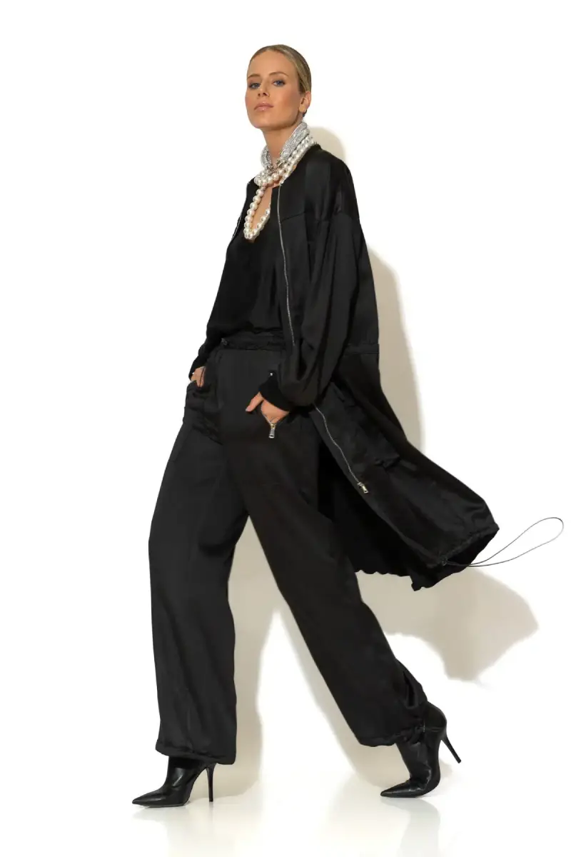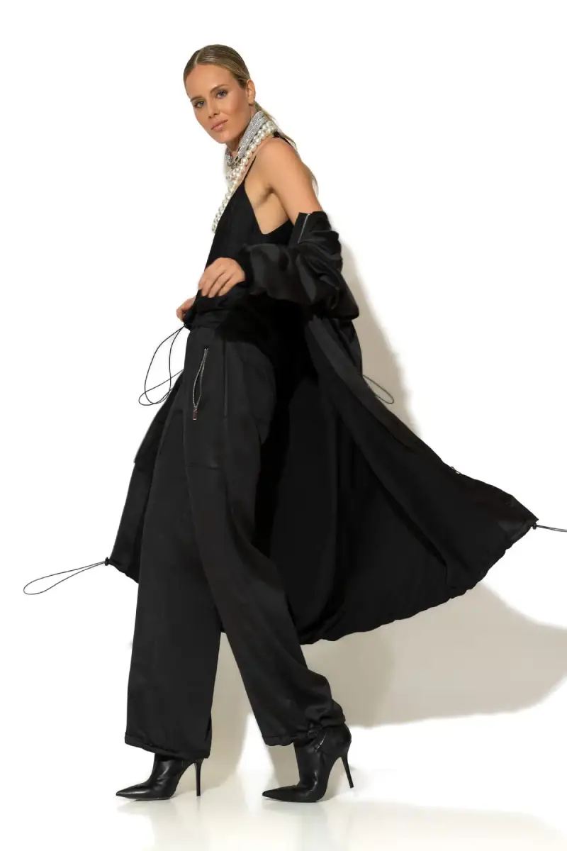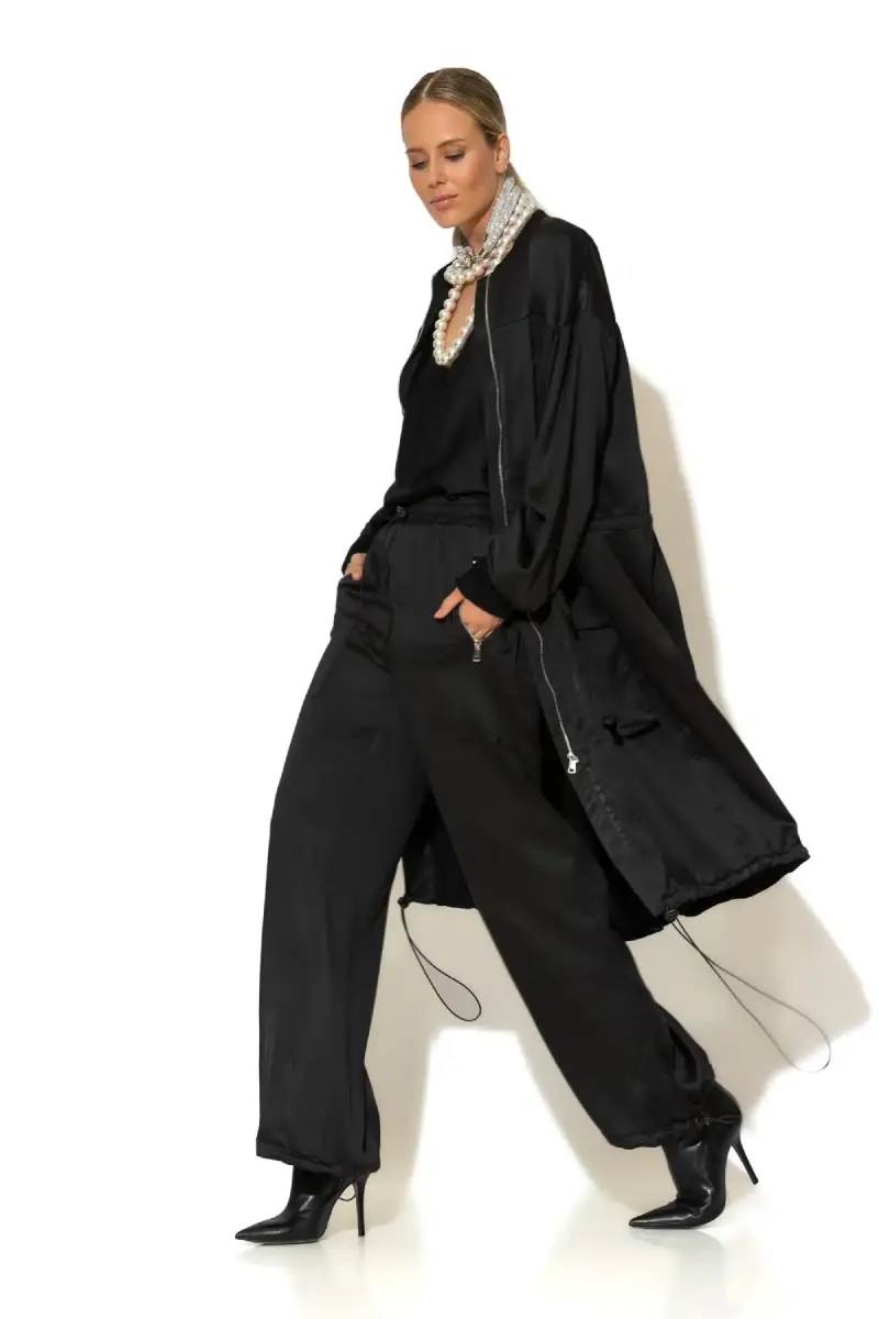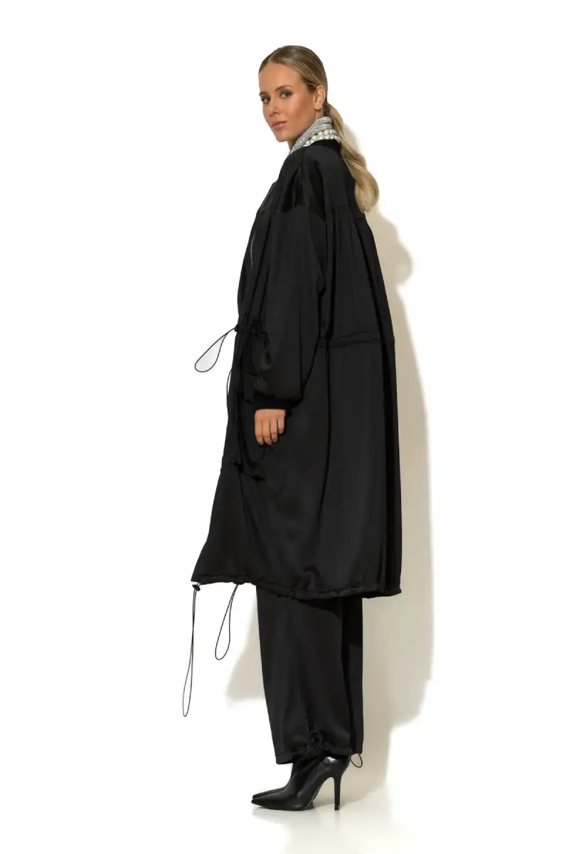 Αναβαθμίστε το στυλ σας με αυτό το oversized trench coat σε σατέν κρεπ ύφασμα που συνδυάζει άνεση και διαχρονική κομψότητα. Το χαλαρό του κόψιμο προσφέρει άνεση σε κάθε στιγμή της ημέρας, ενώ παραμένει απόλυτα θηλυκό και σικ. Η midi γραμμή και η επένδυση χαρίζουν πολυτελή αίσθηση και ολοκληρωμένο look.
