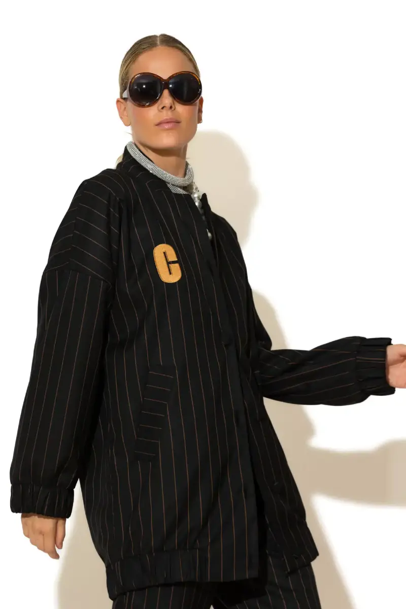 The Boyfriend Button-Down Bomber Jacket συνδυάζει άνεση και διαχρονική κομψότητα, αποτελώντας το απόλυτο κομμάτι για κάθε περίσταση. Η χαλαρή, oversized γραμμή του αγκαλιάζει το σώμα με ανεπιτήδευτο στιλ, προσφέροντας μια μοντέρνα, αλλά ταυτόχρονα κλασική εμφάνιση. Το υφαντό ριγέ ύφασμα χαρίζει μια αίσθηση φρεσκάδας και κίνησης, ενώ το κεντημένο λογότυπο -C- στο στήθος προσθέτει μια διακριτική πινελιά πολυτέλειας.