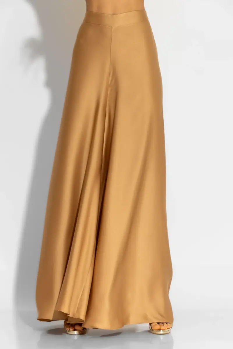 Τα πολύ φαρδιά, skirt-like μπατζάκια προσθέτουν κίνηση και ροή, ενώ παράλληλα χαρίζουν μια ιδιαίτερη, σχεδόν φουστανέ εμφάνιση. Το σατέν ύφασμα προσφέρει μεταξένια υφή και διακριτική λάμψη, κάτι που το καθιστά ιδανικό για πιο επίσημες εμφανίσεις. Μπορείς να το συνδυάσεις με το αντίστοιχο τοπ για ένα ολοκληρωμένο cocktail σύνολο, αλλά και να το φορέσεις ξεχωριστά για πιο ευέλικτα looks.