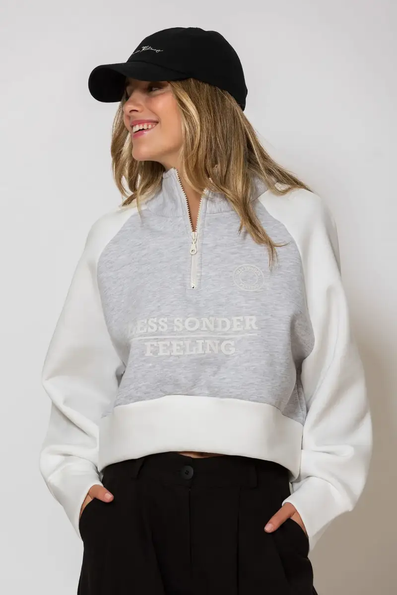 Το διχρωματικό του σχέδιο δίνει αμέσως μια δυναμική, σύγχρονη πινελιά, ενώ το κεντημένο λογότυπο στο μπροστινό μέρος προσθέτει premium χαρακτήρα. Η cropped γραμμή αγκαλιάζει διακριτικά τη μέση, χαρίζοντας ένα θηλυκό και νεανικό αποτέλεσμα. Το κολάρο και το Riri φερμουάρ μπροστά προσθέτουν μια σπορ αλλά κομψή λεπτομέρεια, ιδανική για layering με πουκάμισα ή bralettes.