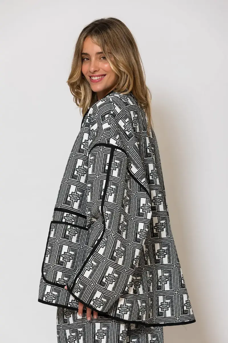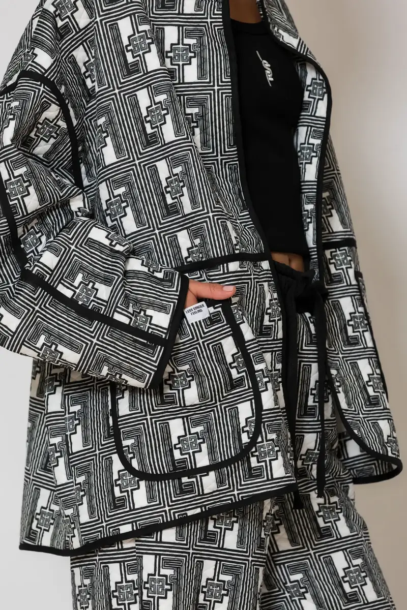 Το quilted ύφασμα (65% πολυεστέρας, 35% βαμβάκι) χαρίζει απαλότητα και ελαφριά δομή, προσφέροντας θερμότητα χωρίς βάρος. Η χαλαρή γραμμή (loose fit) επιτρέπει ελευθερία κινήσεων και δημιουργεί μια ανεπιτήδευτα κομψή σιλουέτα, ιδανική για layering τις πιο δροσερές μέρες.