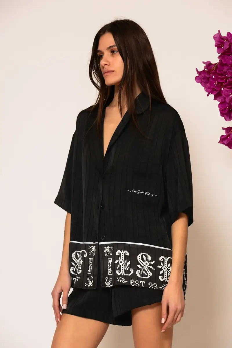 Η oversized γραμμή προσφέρει άνεση και ελευθερία κινήσεων, αλλά ταυτόχρονα διατηρεί μια σύγχρονη και χαλαρή αισθητική. Επιπλέον, τα κοντά μανίκια ενισχύουν τον αέρινο χαρακτήρα του ρούχου και το κάνουν ιδανικό για πιο ζεστές ημέρες. Ο κλασικός γιακάς προσθέτει κομψότητα, ενώ το button-down κλείσιμο σου επιτρέπει να προσαρμόζεις το look ανάλογα με τη διάθεσή σου.