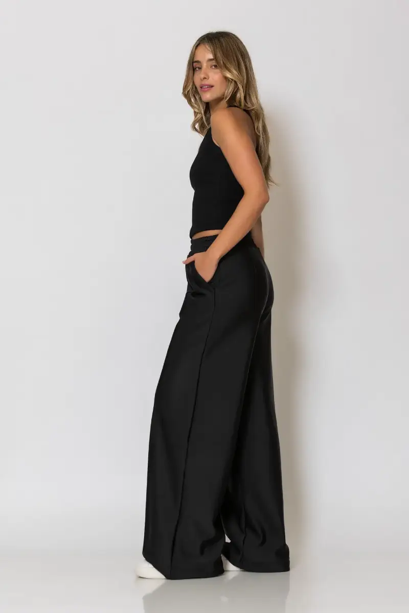 Το scuba ύφασμα με velvet υφή προσφέρει μια απαλή, πολυτελή αίσθηση στο δέρμα, ενώ χαρίζει διακριτική λάμψη που αναδεικνύει το ρούχο. Η ελαστική μέση εξασφαλίζει άνετη εφαρμογή και ευκολία στην κίνηση, χωρίς να πιέζει. Το φαρδύ, maxi πόδι δίνει ρευστότητα στη σιλουέτα και αναδεικνύει το σώμα με χαλαρό, κομψό τρόπο. Η loose fit γραμμή προσφέρει αίσθηση ελευθερίας, ιδανική για καθημερινή χρήση, ταξίδια ή στιγμές χαλάρωσης.