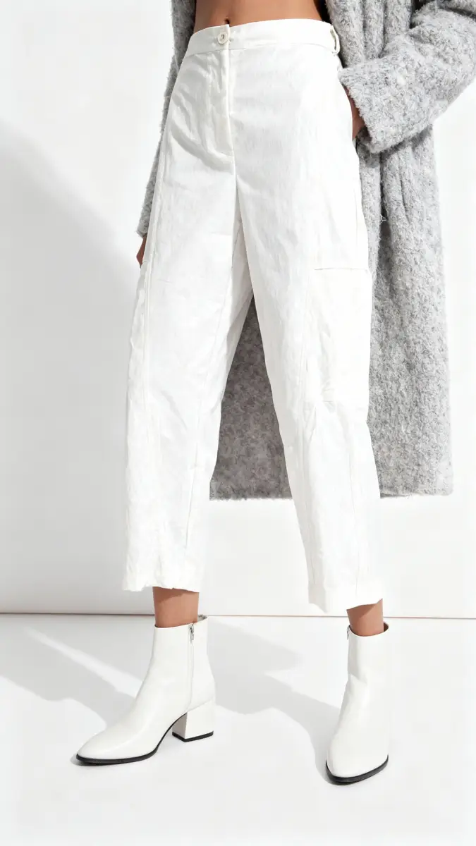Αυτό το παντελόνι είναι η ιδανική επιλογή για ένα κομψό και ταυτόχρονα χαλαρό στυλ. Διαθέτει τσαλακωτή υφή που του προσδίδει μοντέρνα αισθητική και ανέμελο ύφος, καθιστώντας το μια ευέλικτη προσθήκη στη γκαρνταρόμπα σας. Το μήκος του φτάνει πάνω από τον αστράγαλο, προσφέροντας μια δροσερή και ανάλαφρη αίσθηση, ιδανική για ανοιξιάτικες και καλοκαιρινές εμφανίσεις.