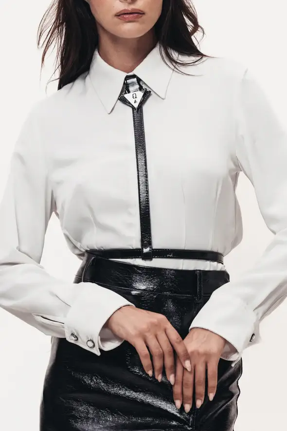 Το Q Tie παρουσιάζει ένα χαλαρό και unisex σχέδιο που εντυπωσιάζει με τη μοντέρνα αισθητική του και την άνετη εφαρμογή. Διαθέτει μεταλλικό τρίγωνο, το οποίο προσθέτει στυλ και μοναδικότητα στην εμφάνιση, ενώ η ρυθμιζόμενη αλυσίδα και το κούμπωμα εξασφαλίζουν σταθερό και άνετο κλείσιμο. Επιπλέον, τα ρυθμιζόμενα κουμπιά στην περιοχή του λαιμού επιτρέπουν την εύκολη προσαρμογή, προσφέροντας εξαιρετική άνεση καθ’ όλη τη διάρκεια της ημέρας.
