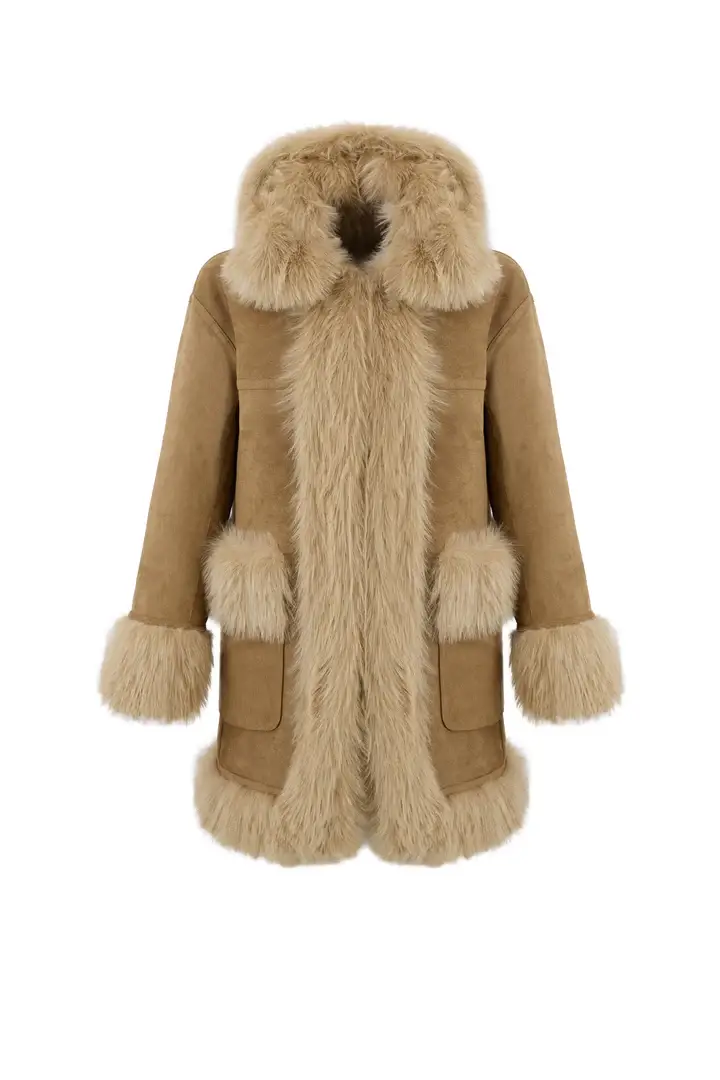Το Reversible Duffle & Penny Lane Duo Coat with Detachable Hood είναι ένα μοναδικό κομμάτι που συνδυάζει λειτουργικότητα, στυλ και ευελιξία. Πρόκειται για ένα διπλής όψης παλτό, που σου επιτρέπει να αλλάζεις εμφάνιση με ευκολία. Προσαρμόζοντάς το στις ανάγκες και τη διάθεσή σου. Από τη μία πλευρά, η υφή faux suede προσφέρει διακριτική κομψότητα και ματ φινίρισμα, ενώ από την άλλη, η πλούσια faux γούνα χαρίζει αίσθηση πολυτέλειας και ασύγκριτη ζεστασιά.