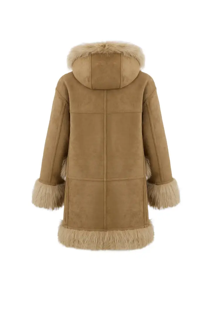 Η αποσπώμενη κουκούλα προσθέτει πρακτικότητα και επιτρέπει διαφορετικά styling, είτε επιλέξεις μια πιο casual είτε μια πιο chic εκδοχή. Επιπλέον, οι duffle λεπτομέρειες εμπνέονται από τα κλασικά παλτά της βρετανικής σχολής. Ενώ το Penny Lane ύφος προσδίδει μια boho και ρετρό διάθεση που παραμένει απόλυτα σύγχρονη. Έτσι, το παλτό είναι ο ιδανικός σύμμαχος για κάθε περίσταση, από τις πρωινές βόλτες μέχρι τις βραδινές εξόδους.