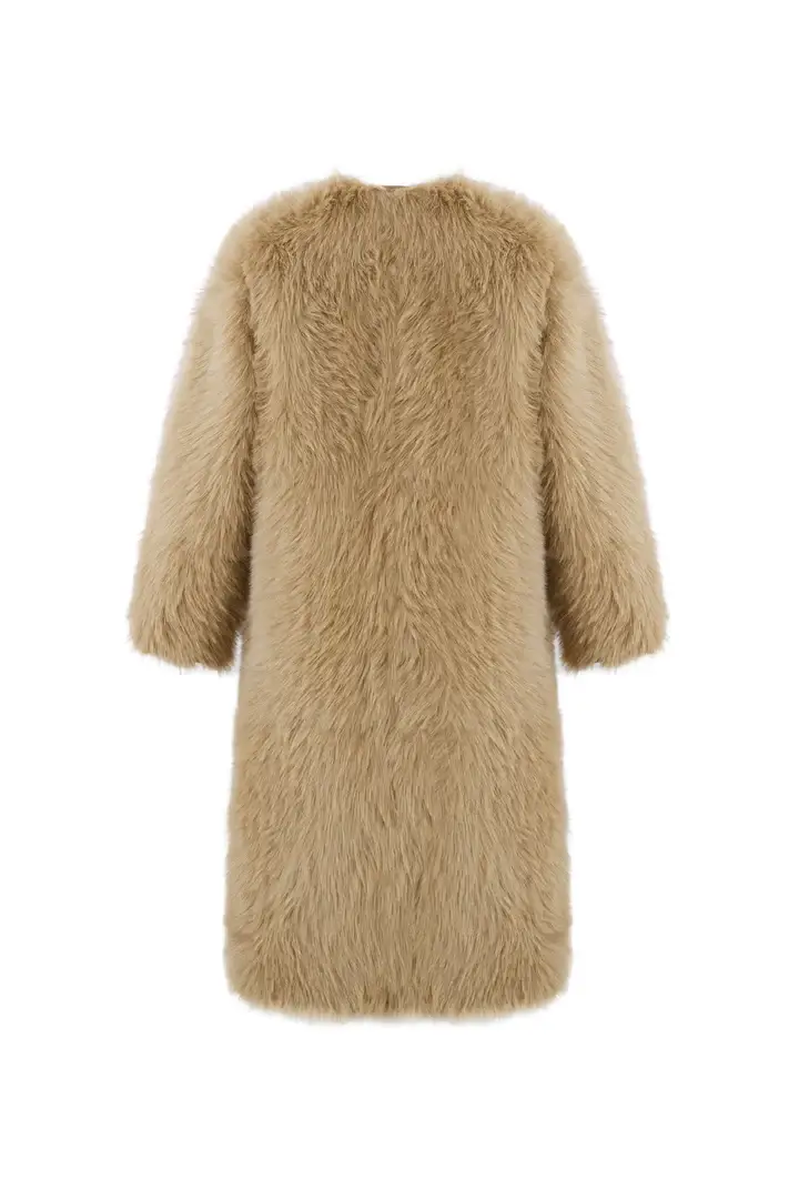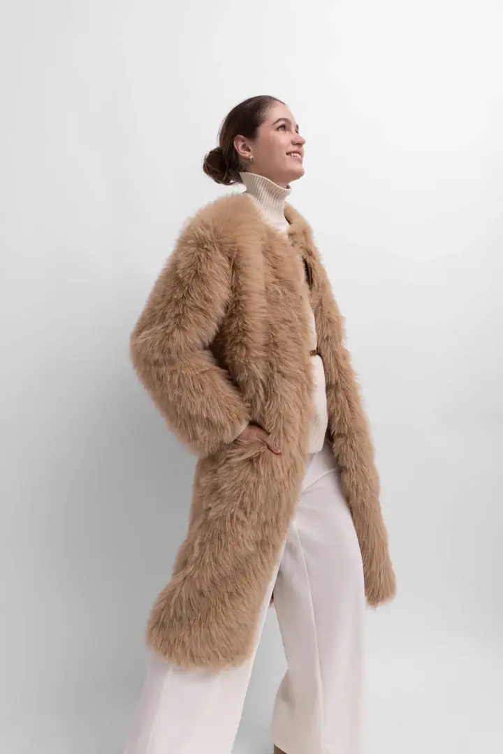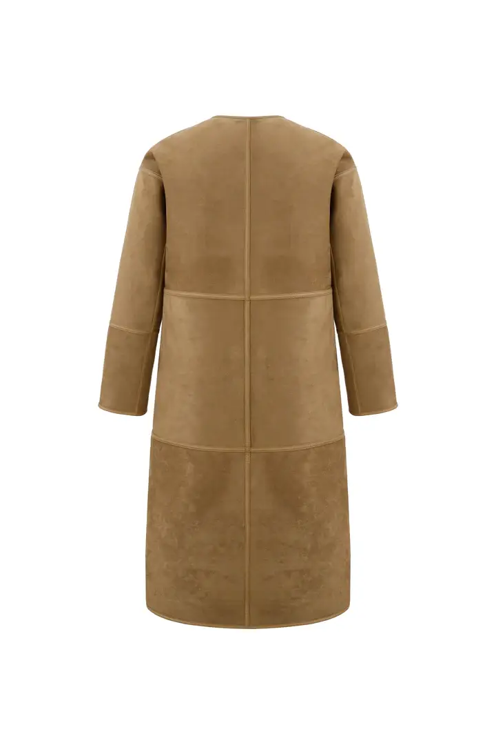 Το Reversible Faux Toscana Coat είναι το ιδανικό πανωφόρι για όσες αγαπούν την πολυτέλεια και την άνεση σε ίσες δόσεις. Με διπλής όψης σχεδίαση, προσφέρει δύο διαφορετικά στυλ σε ένα ρούχο. Η μία πλευρά έχει υφή faux suede, με μαλακή και φίνα αίσθηση, ενώ η άλλη είναι επενδυμένη με πλούσια faux γούνα τύπου Toscana, που χαρίζει απαράμιλλη ζεστασιά και κομψότητα.
